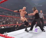 Deive vai se levantando devagar,ele sofre um pouco ele se levanta pega Bob pelo cabelo e joga ele para dentro do ringue,ele levanta Bob joga nas cordas mais Bob aplica um Spinning Calf Kick !
