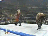Kaval sobe no Top Rope fazendo sua Taunt e aplica um Warriors Way !